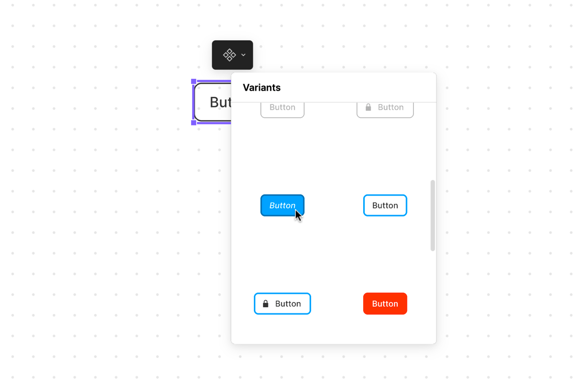 如果你的组件有变体,你可以从内联菜单中选择变体。