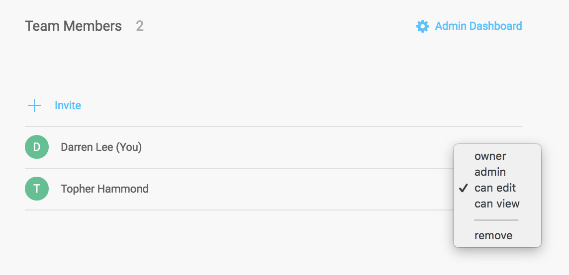 管理员 Admins 可以修改团队成员的权限,并邀请其他人加入管理员和编辑访问权限。