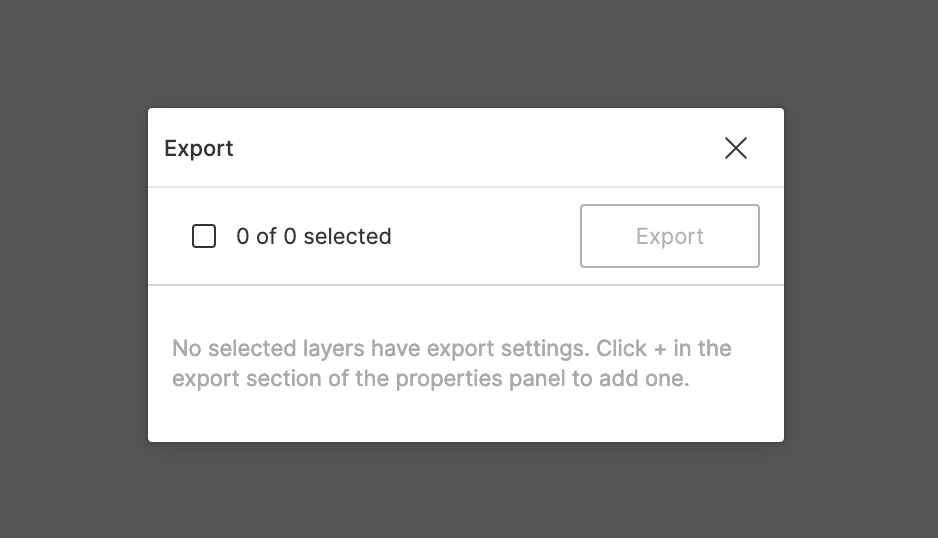 如果你尚未将任何导出设置应用于文件中的图层、组或框架,则看不到任何可用于导出的选项: