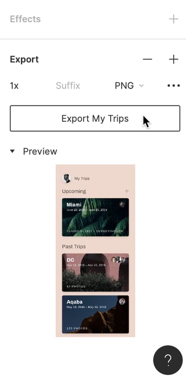 快速开始:如果你将要导出的对象应用了导出设置,则可以使用键盘快捷键 ⇧ + ⌘ + E(Mac)或 Shift + Ctrl + E(Windows)导出当前选择的图层、组或框架。