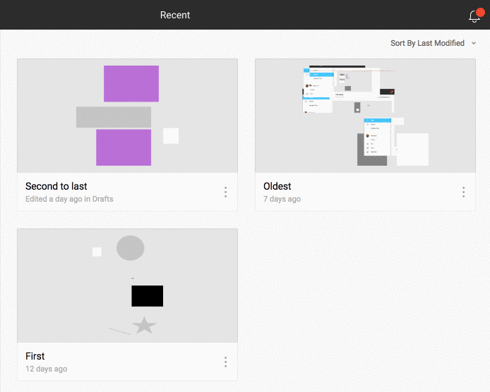 显示你最近查看过的最多 50 个文件。它将显示你自己的文件,属于其他人的文件以及属于团队的文件。在此视图创建的新文件将放置在个人空间的草稿箱中。你还可以右键单击文件以在其项目中查看它。