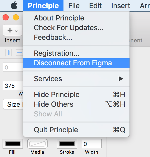如果你想更改与 Principle 帐户关联的 Figma 帐户,或完全断开 Figma 和 Principle 的连接,你可以在 Principle 中: