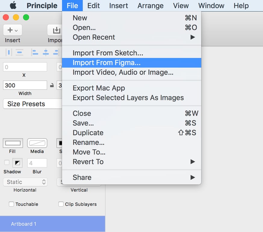 现在两个应用程序已连接,你能够将你的设计文件直接导入到 Principle。