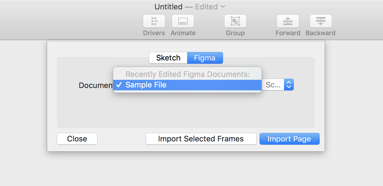 此时,你还可以跳到 Figma 并选择要导入的框架。 这将更新你在 Principle 中做的选择。