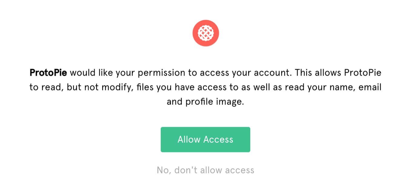 登录后,单击 Allow Access 按钮以授予 ProtoPie 访问文件的权限: