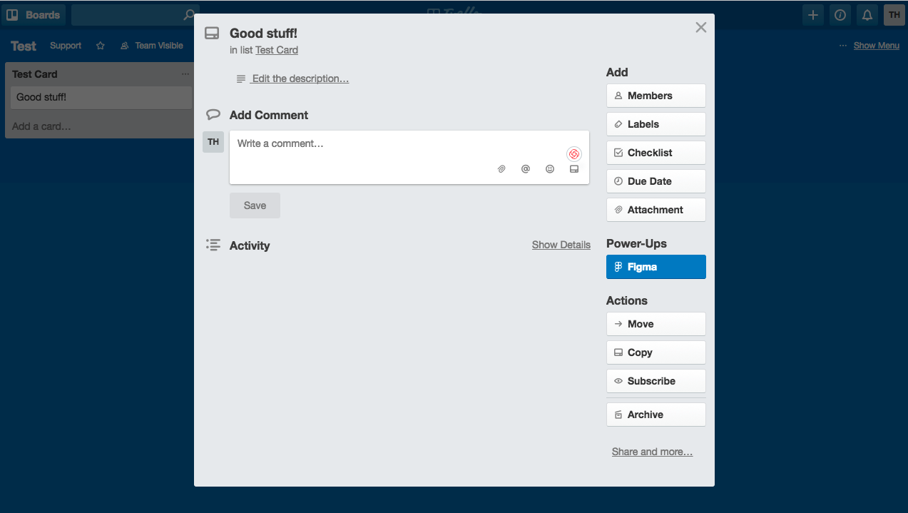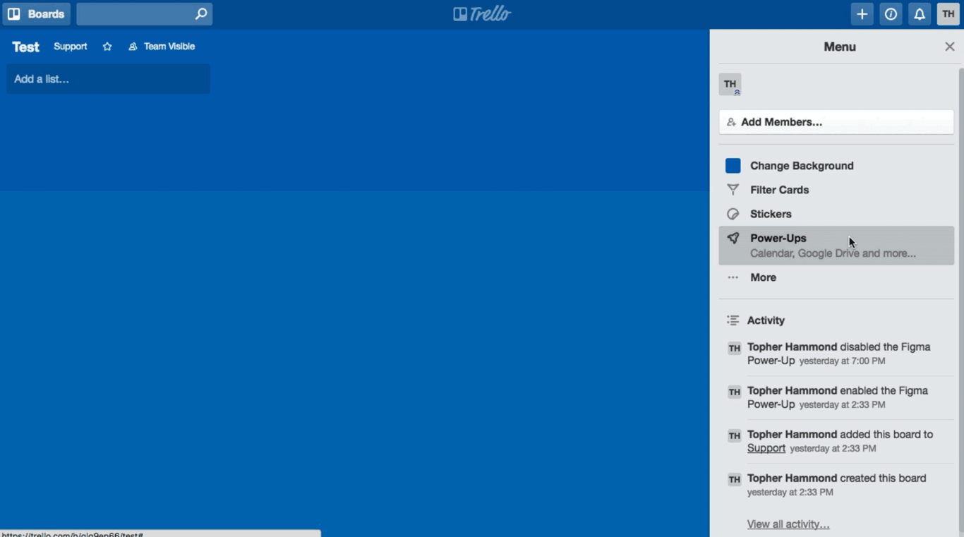 Power-Ups 允许你将其它应用嵌入到 Trello 看板。 通过启用 Figma Power-Up,你可以嵌入 Figma 文件,以便与团队中的设计人员、工程师和其他利益相关者进行更有效的沟通。