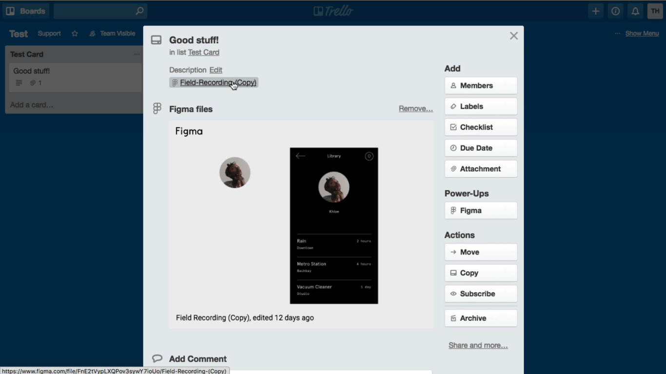 现在你的 Trello 团队成员会在卡片视图中看到 Figma 列表在 Power-Ups 下。