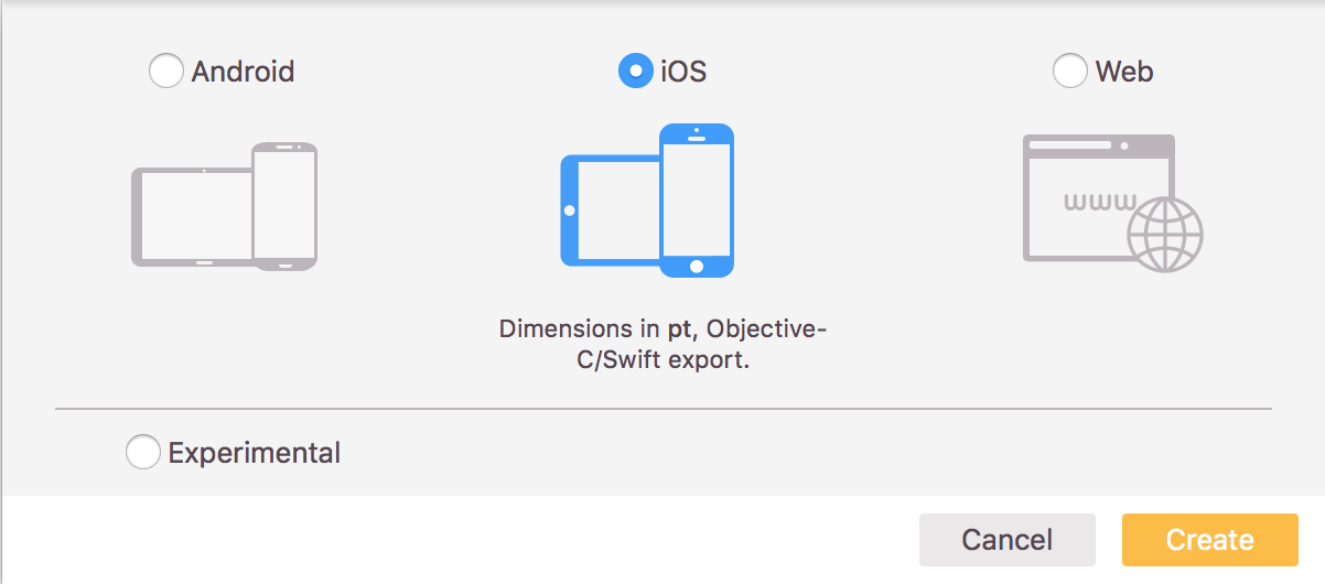 当你启动 Zeplin 时,系统会提示你创建第一个项目。你可以选择 Android,iOS 或 Web。