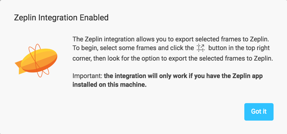 Figma 和 Zeplin 之间的集成仅适用于 Zeplin 的客户端。 目前无法从 Figma 导出到 Zeplin 的浏览器版。