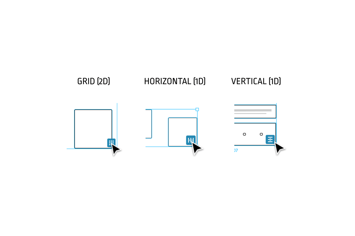 对于水平轴或垂直轴(1D)上的智能排列,对象将仅基于它们重叠的轴排列。