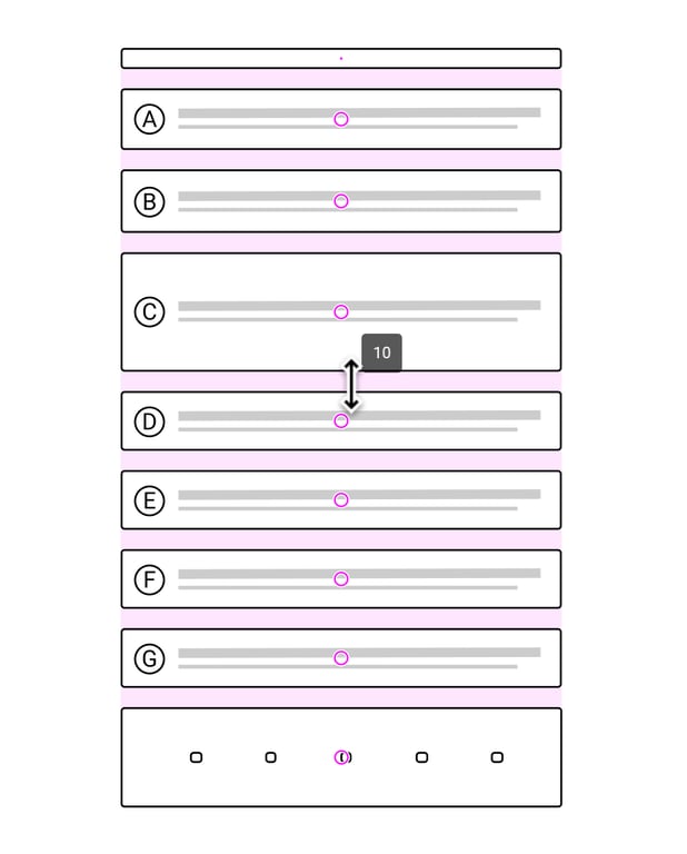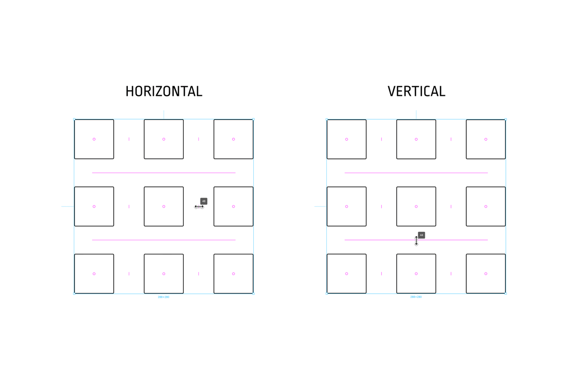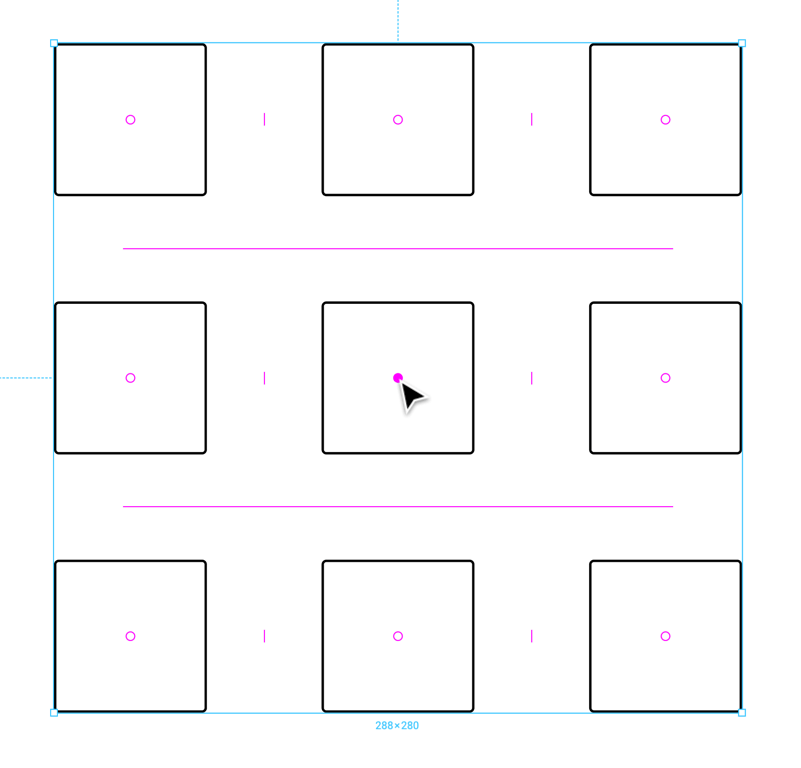 将鼠标悬停在智能排列上时,每个对象之间将出现粉红色线条形式的控制柄,这些手柄允许你调整对象之间的间距。