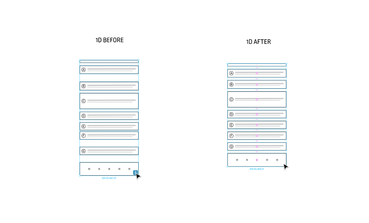 您可以在 2D 智能排列中调整一个对象的大小,或在 1D 智能排列中调整多个对象。