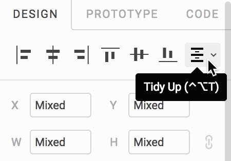 ^ + ⌥ + T(Mac)或Ctrl + Alt + Shift + T(Windows)。 c. 单击属性面板中的整理图标(位于对齐部分的最右侧):对象将在画布上重新排列,以使它们在 x 或 y 轴上等距。
