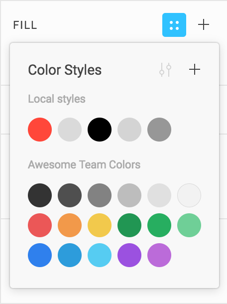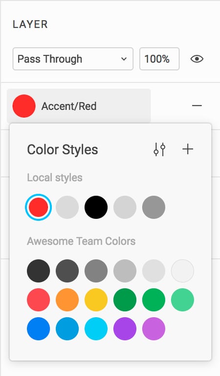 3. 将出现 Color Style 菜单,其中会显示共享样式和本地样式: