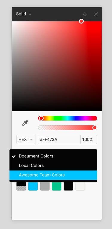 当你使用颜色选择器时,你可以在文档颜色和共享颜色样式之间切换。