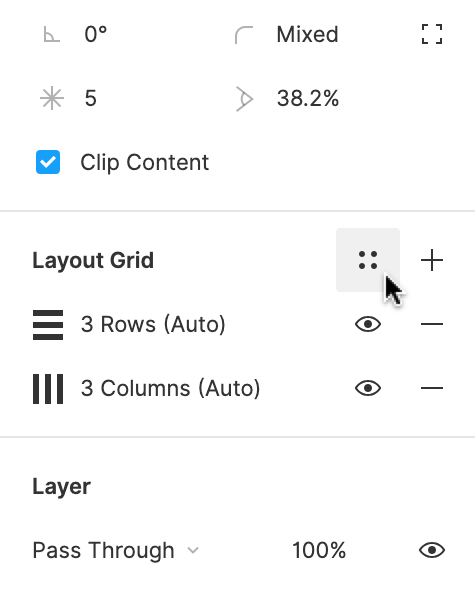 4. 单击属性面板中 Layout Grid 旁边的样式图标(四个点)。