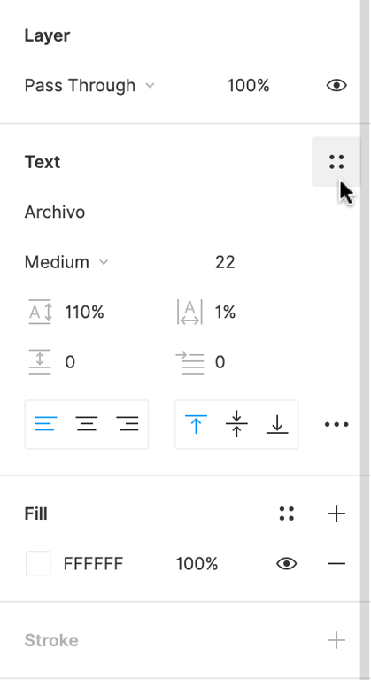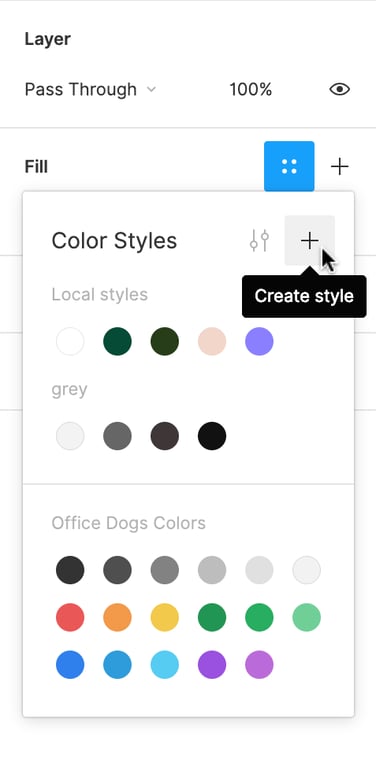 2. 在“属性”面板中,单击要保存的属性旁边的样式图标(四个点)。 (对于颜色样式,这可以是填充或描边属性。)