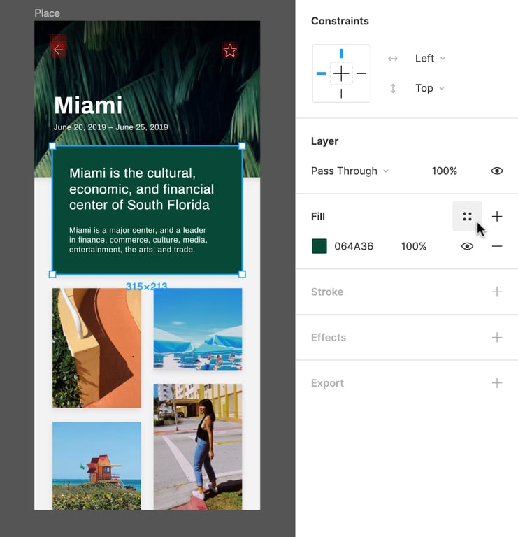 颜色样式可应用于设计中的填充,描边和文本,你也可以为渐变创建颜色样式。