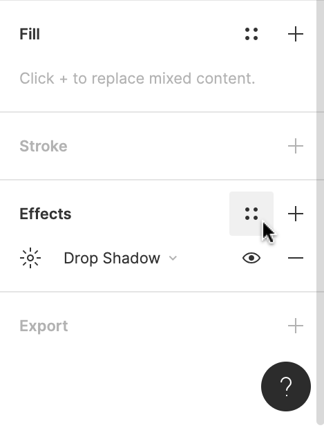 3. 单击属性面板中效果标签旁边的样式图标(四个点)。