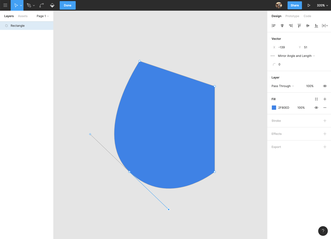 使用 Command + Click 激活曲线手柄。
