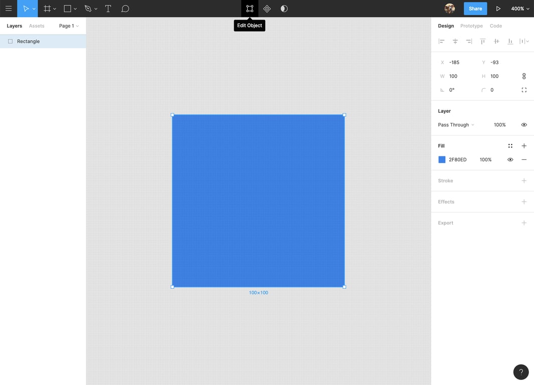 你可以使用钢笔工具创建形状,也可以使用形状工具在画布上拖出图像。绘制形状后,使用工具栏中的 Edit Object 按钮进入矢量编辑模式。
