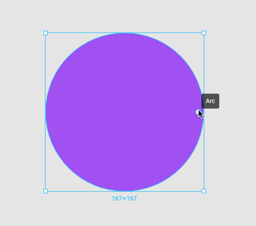 2. 将鼠标悬停在圆圈上时,右侧会出现一个手柄。 此点确定你可以开始创建扇形的位置:
